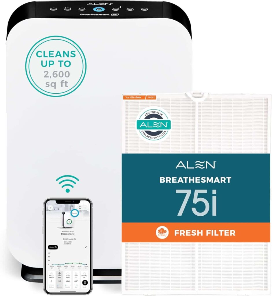 The Alen Air Purifier provides advanced air cleaning performance with its True HEPA filter, effectively capturing 99.99% of allergens, dust, and pet dander. Designed for large rooms, it refreshes up to 1,300 sq. ft. every 30 minutes, making it ideal for open spaces and bedrooms. The activated carbon filter helps neutralize smoke and household odors, leaving your air noticeably fresher. Its sleek design and quiet operation make it perfect for continuous use without disruption. Equipped with smart sensors, it automatically adjusts fan speed based on real-time air quality. The BreatheSmart system ensures maximum efficiency while maintaining low energy use. Whether you’re an allergy sufferer or simply want cleaner, healthier air, the Alen Air Purifier offers the perfect blend of style, technology, and peace of mind for a more comfortable and breathable home environment.