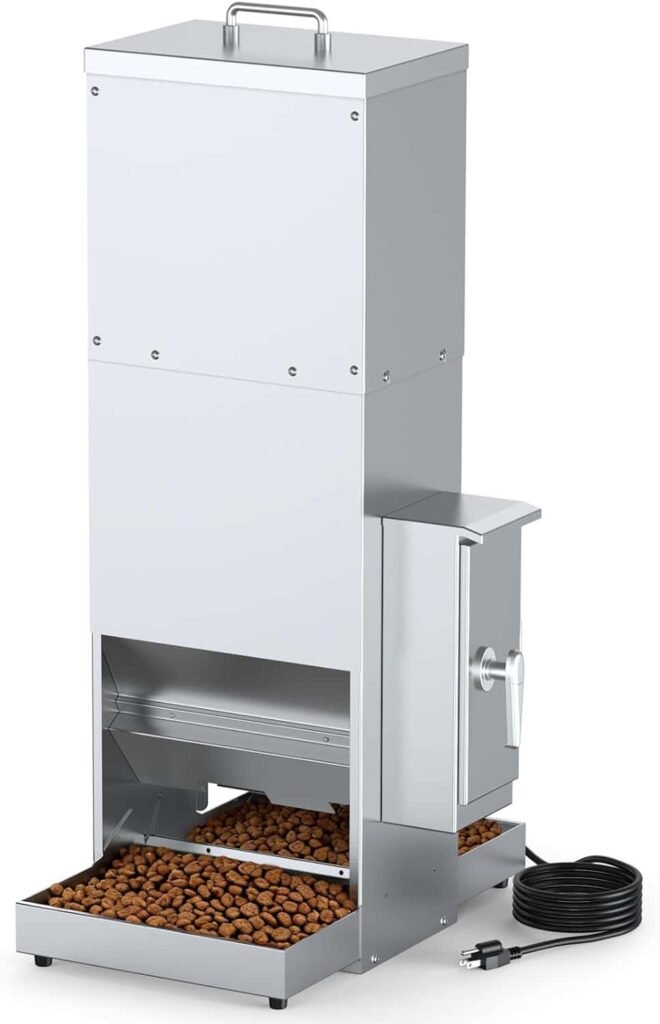 The feeder is also designed with ease of use in mind. Its controls are straightforward, making setup simple even for first-time users. The removable bowl and hopper simplify cleaning, which helps maintain hygiene.