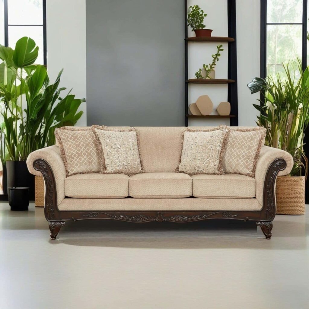 8. Hernen Carved Wood Frame Sofa