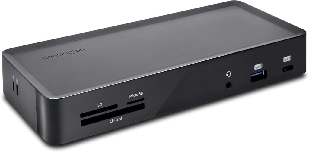 The Kensington SD4900P Triple 4K Display Docking Station is built for power users who demand maximum visual performance. Supporting up to three 4K monitors simultaneously, it delivers exceptional clarity and workspace flexibility. Featuring 13 ports, including USB-C, USB-A, DisplayPort++, HDMI, Ethernet, and audio jacks, this dock ensures complete connectivity for any setup. With 60W power delivery, it charges your laptop while keeping peripherals powered. The SD4900P’s robust design guarantees durability and long-term reliability, ideal for professional offices and creative studios. It’s compatible with Windows and macOS, offering seamless plug-and-play functionality. Whether you’re a designer, analyst, or multitasker, this dock transforms your desk into a high-performance workstation. Combining cutting-edge display support with fast data transfer and power delivery, the Kensington SD4900P stands out as one of the best triple-display docking stations available today.