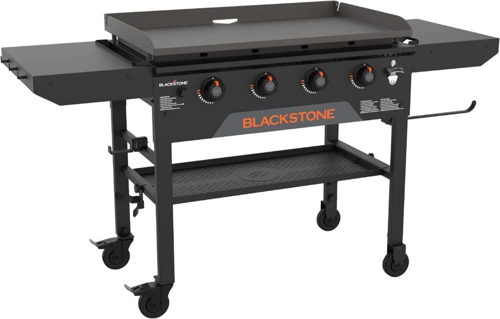 The Blackstone Portable Outdoor Cooking Gas Grill is engineered for adventure lovers who want full-size flavor in a travel-ready design. Built with a sturdy frame, folding legs, and smooth-rolling wheels, it transports easily from driveway to campsite without sacrificing stability. The spacious flat-top cooking surface heats quickly and evenly, letting you prepare breakfast, lunch, and dinner on one versatile griddle. Sear burgers, cook bacon and eggs, stir-fry vegetables, or warm tortillas with consistent, edge-to-edge heat. A reliable push-button ignition delivers fast starts, while the rear grease management system channels drippings away for cleaner, safer operation. Durable steel construction stands up to outdoor use and frequent travel. This grill shines at tailgates, RV parks, and backyard parties where speed and capacity matter. With excellent heat control, quick cleanup, and true portability, it replaces multiple cooking tools with one efficient setup. If you want restaurant-style flat-top cooking wherever you roam, the Blackstone Portable Gas Grill delivers serious performance, convenience, and crowd-pleasing results every single time. Setup is quick, storage is simple, and mobility stays effortless today.