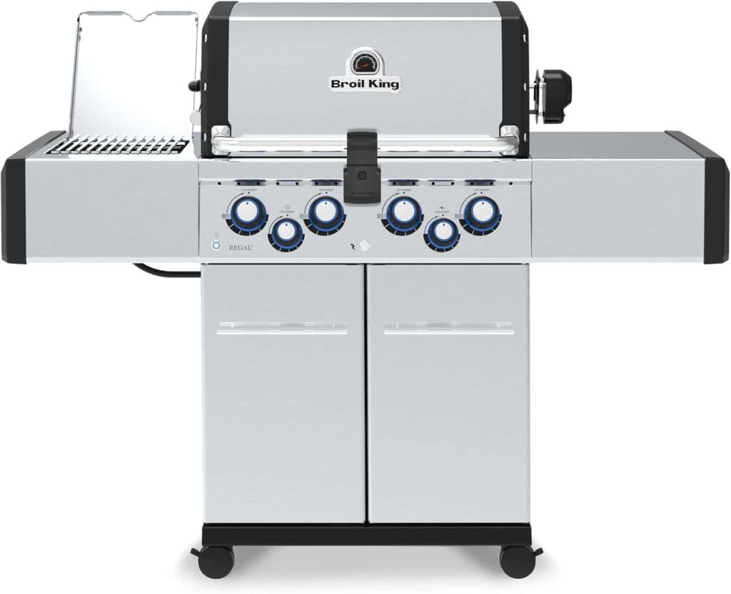 The Broil King Regal S490 Gas Grill is engineered for serious backyard chefs who demand professional power, precision, and durability in every cook. Equipped with four high-output stainless steel burners, it delivers consistent heat control for searing, roasting, and slow grilling with confidence. The heavy-duty cast iron cooking grates retain heat exceptionally well and create bold, restaurant-quality sear marks on steaks, burgers, and seafood. Its dual-level cooking system expands usable space, while the rear rotisserie burner allows you to roast whole chickens and large cuts with even, controlled heat. Premium stainless steel construction resists corrosion and elevates the look of any outdoor kitchen. Illuminated control knobs improve safety for evening grilling, and the electronic ignition ensures fast, reliable startups. With generous prep space, smooth temperature adjustments, and rock-solid build quality, this grill is designed for performance-driven cooks. If you want versatility, power, and long-term reliability in one premium machine, the Broil King Regal S490 delivers elite grilling results for family meals and large weekend gatherings with confidence, flavor, control, and convenience.