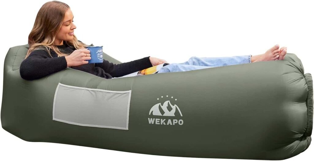 The WEKAPO Inflatable Couch Air Lounger Chair stands out as one of the best inflatable loungers for outdoor comfort and portability. Designed with durability and convenience in mind, this lounger is ideal for beach trips, camping adventures, music festivals, picnics, and backyard relaxation. Its lightweight construction makes it easy to carry, while the pump-free inflation process allows users to set it up quickly.