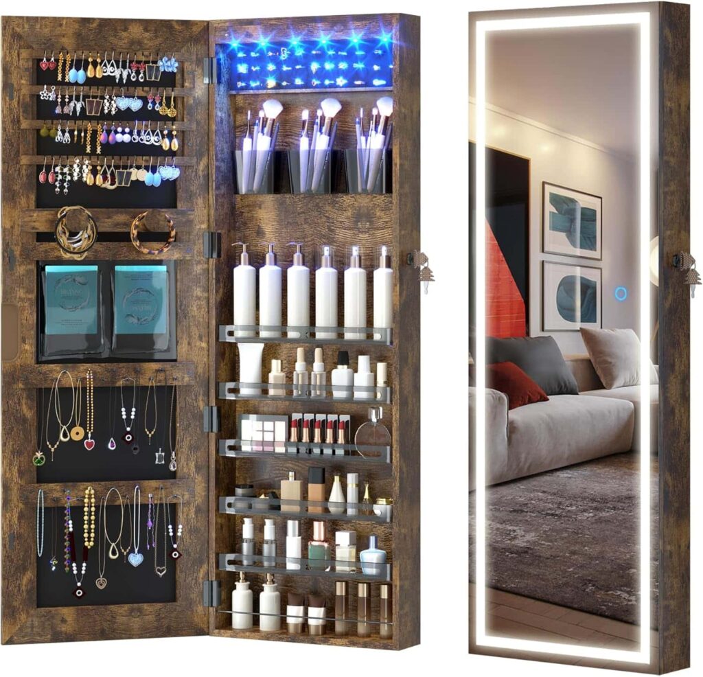 1. LVSOMT LED Mirror Jewelry Cabinet