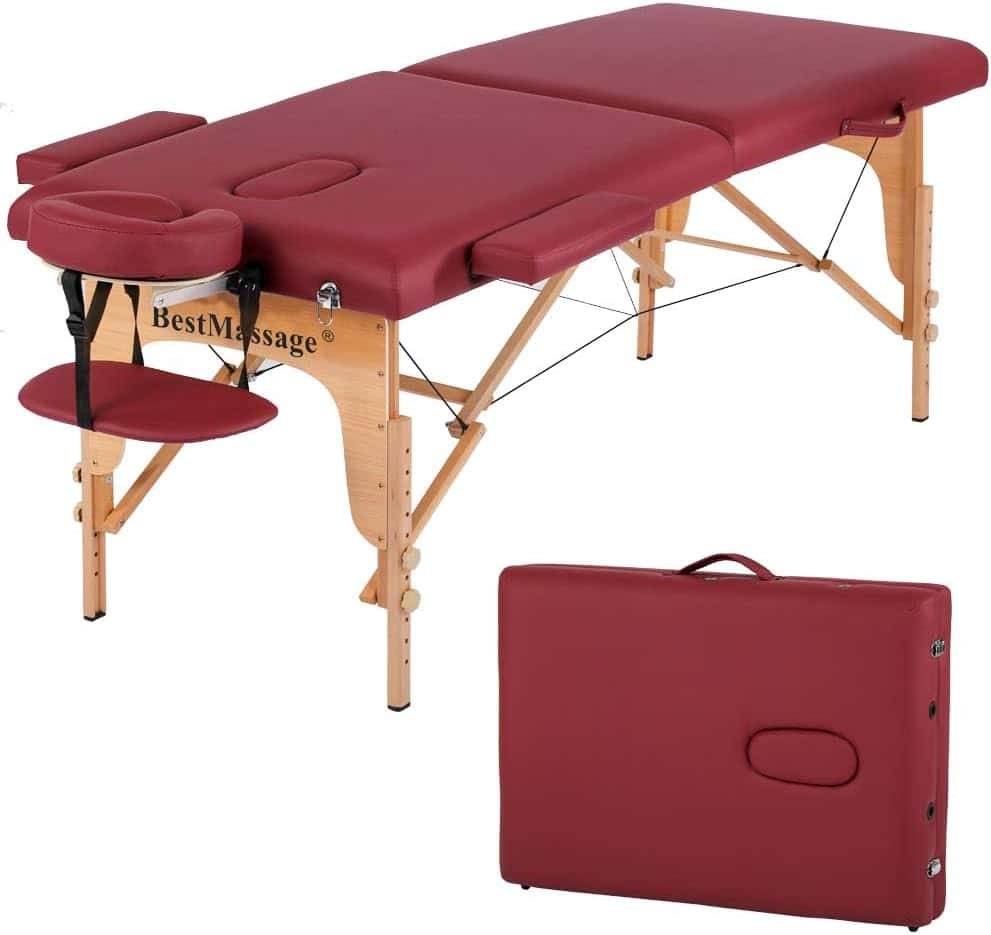 1. BestMassage Portable Massage Table – Height Adjustable with a Carry Case