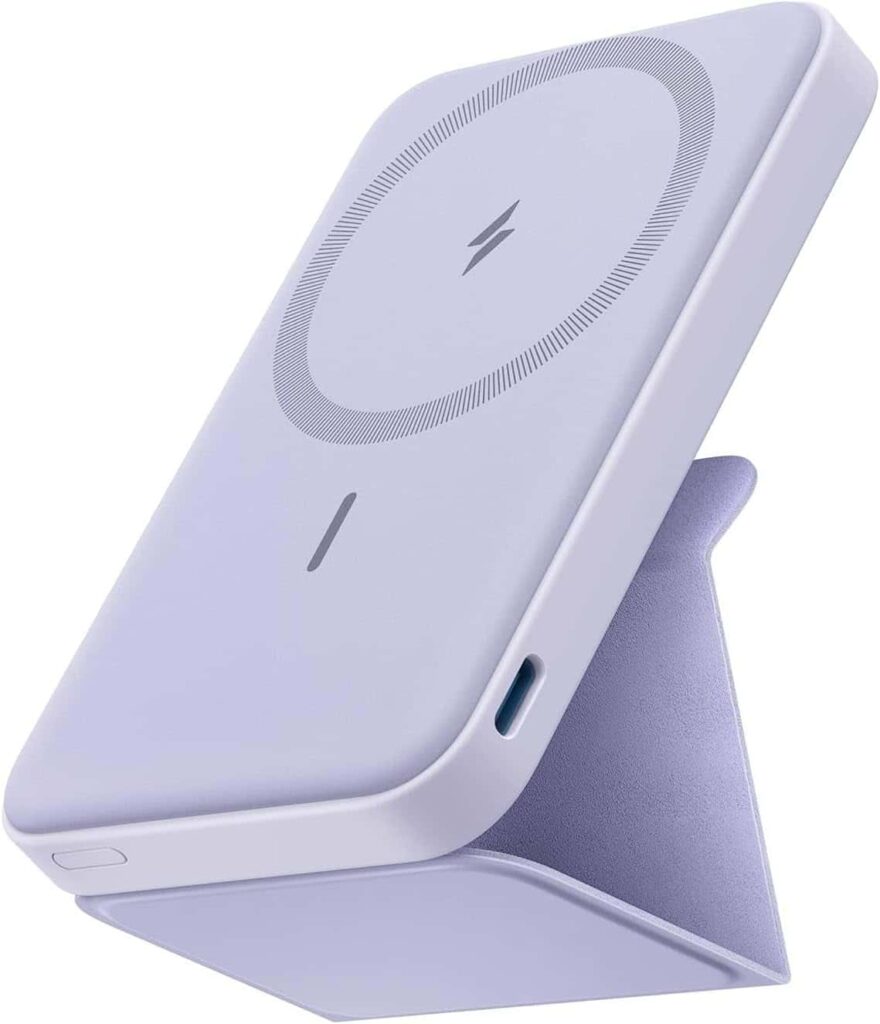 The Anker 622 MagGo Portable Charger is an ultra-slim, MagSafe-compatible power bank that combines convenience with high performance. With a 5000mAh battery, it’s perfect for giving your iPhone a quick boost when you’re on the move. The foldable kickstand lets you prop up your phone for hands-free use while charging. Its magnetic alignment ensures a secure connection, delivering efficient wireless charging. The compact, lightweight design makes it easy to slip into a pocket or bag, ideal for everyday use. It’s perfect for travelers, commuters, and busy professionals who need reliable power without extra bulk. Anker’s superior build quality ensures durability and longevity. If you need a sleek, dependable MagSafe power bank, this is a top choice.